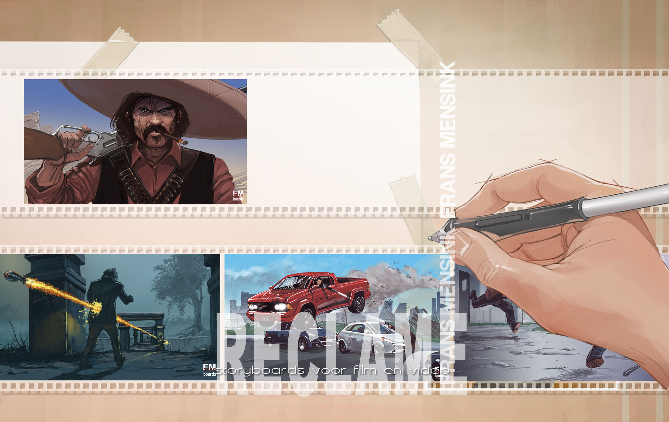 Für Film und Werbespots. Zwei ziemlich unterschiedliche Disziplinen die andere Arbeitsweisen fragen und oft auch eine andere Stimmung vermitteln. Film boards sind meistens weniger eilig und lassen den Illustrator mehr Zeit. Storyboards für Werbespots sind des öfteren schneller und mehr Produktionsarbeit.CARTOONS | COMICS